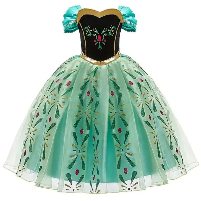 Śliczny kostium, odwzorowany na podobieństwo sukni bohaterki Anny z filmu „Frozen – Kraina Lodu” (ubranie z balu koronacyjnego siostry Elsy).